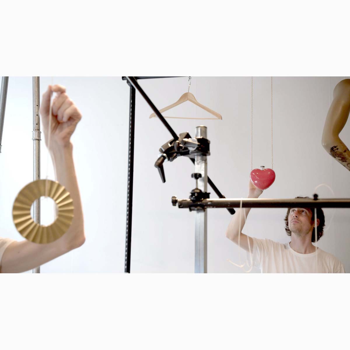 Sometimes the sounds are close to nature: insect noises, birdsong, or frog croaking. Sometimes they are electronic and mechanical. Sometimes the sound worlds merge, so it is unclear whether the sounds are electronically generated or organic. The sounds are not random, but are the direct result of the oscillations of the objects. Both visually and aurally, the repetitive back-and-forth swinging of the pendulums creates a hypnotic effect. In terms of content, the work deals with various themes—from nature and technology, to transience and transformation, to the question of how these worlds interweave.